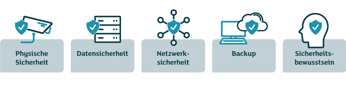 | Datensicherheit | Netzwerksicherheit | Gebäudesicherheit | Sicherheitsbewusstsein |