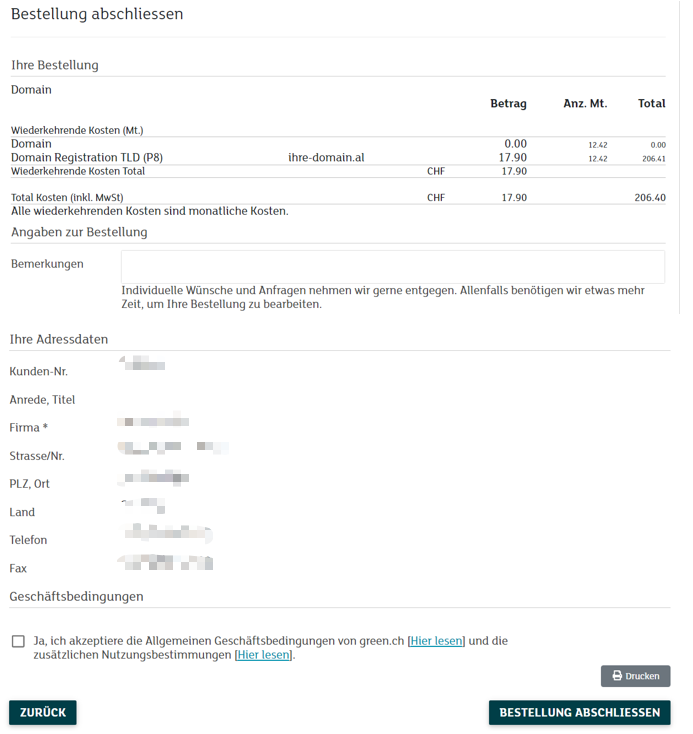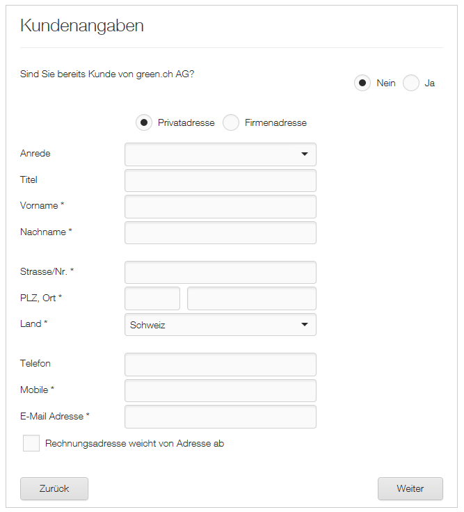 Wenn Sie Neukunde bei Green.ch sind, füllen Sie bitte das Formular aus.