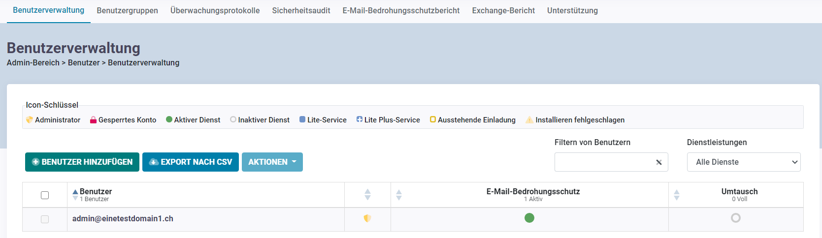 2. Klicken Sie nun auf den Menüpunkt „Benutzer“ und danach auf „Benutzerverwaltung“. Dieser Schritt dient der Sicherstellung, dass Sie sich im richtigen Menüpunkt befinden. Nach dem Einstieg in das Kundenportal, ist dies (per Standardeinstellung) die Einstiegsseite.