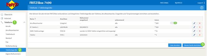 2. Klicken Sie im Menü "Telefonie" auf "Telefoniegeräte".