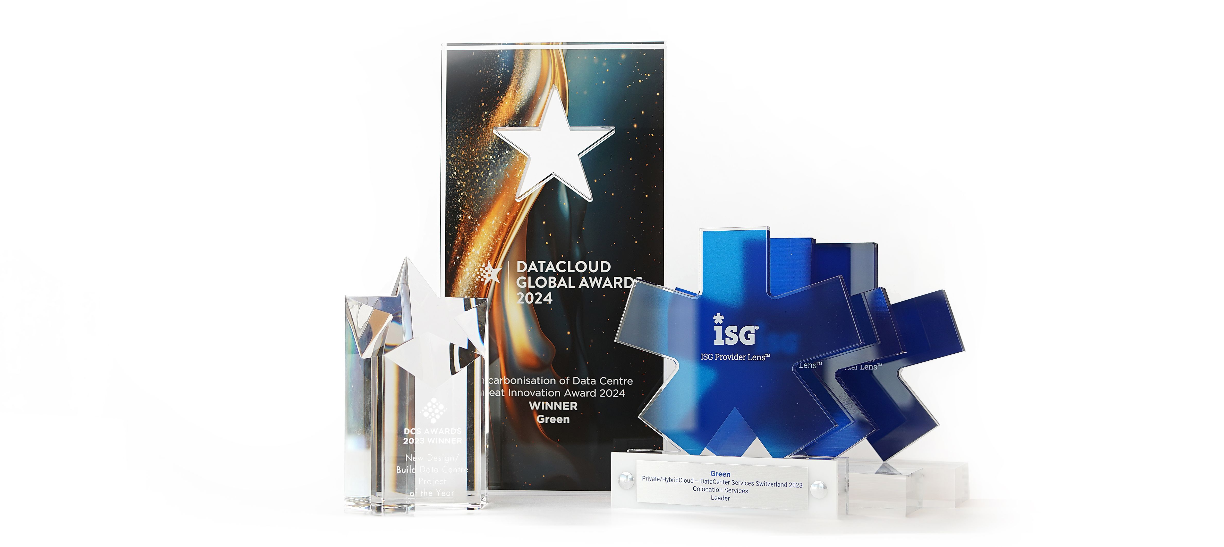Wir überzeugen regelmässig auf internationaler Ebene. Ausgezeichnet wurden wir bereits für Innovation, zukunftsorientiertes Datacenter-Design, Kundenorientierung und die Abwärmenutzung, die wir als Pionierin bereits früh implementiert haben.