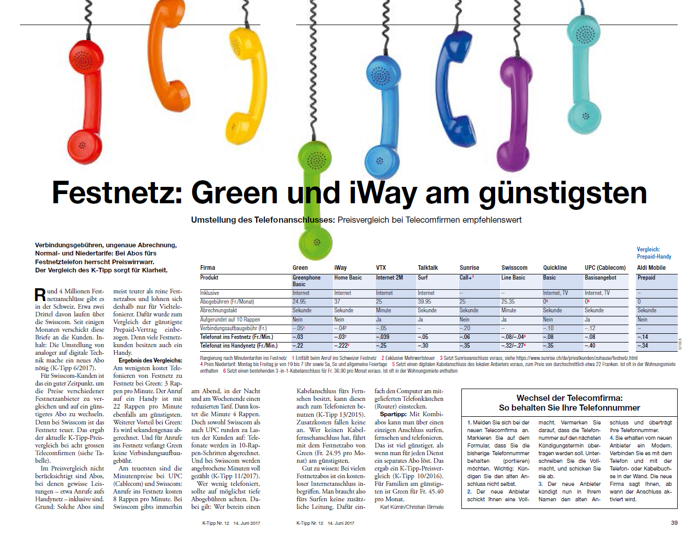 - 06/2017 K-Tipp - Günstigstes Festnetzangebot der Schweiz