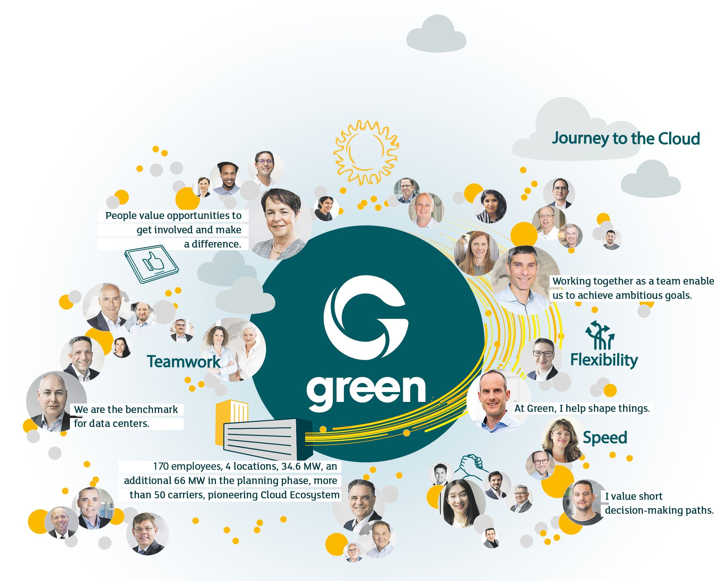 We combine our pioneering spirit with strong customer orientation. We recognized the need for secure and modern data locations early on. Green was the first provider to plan and implement large, energy-efficient and high-performance data centers in Switzerland to provide space for the rapidly increasing data volume and to meet the high security requirements. The data center campus in Lupfig is considered a showcase project, winning environmental and industry awards and making Switzerland known beyond its borders as a secure data location. In 2019, Green commissioned Switzerland's first high-performance data center for public cloud providers (hyperscalers). Since then, Green has been growing year by year with additional campus locations. Meanwhile, Green is considered the market leader for data center services in Switzerland. Large companies, SMEs and leading international public cloud providers place their trust in Green.