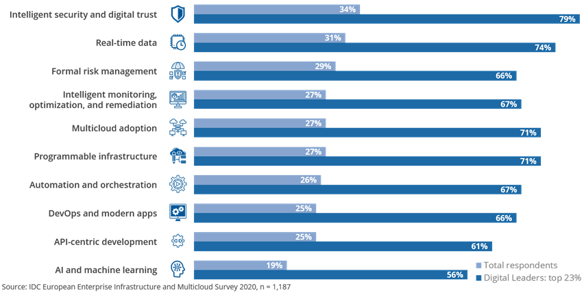 Deploying all of these in a broad-based approach is what a state-of-the-art IT infrastructure looks like — but only around a quarter of companies are operating consistently at this level.