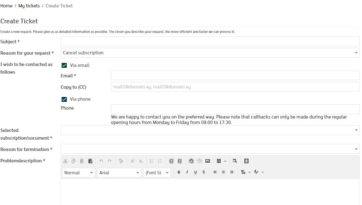 In the white field "Problem description" we ask you to list in as much detail as possible or to explain exactly which services are to be cancelled.