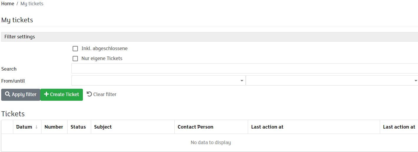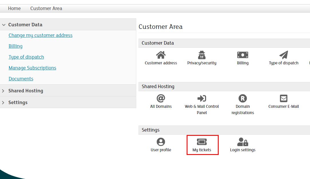 Once you have successfully logged into my.green.ch. Select "My tickets" in the customer area under settings