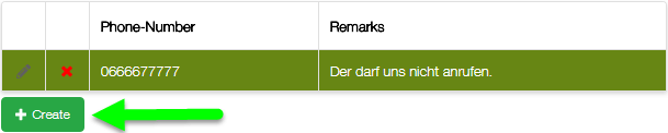 To create a new black list entry, press the button create: