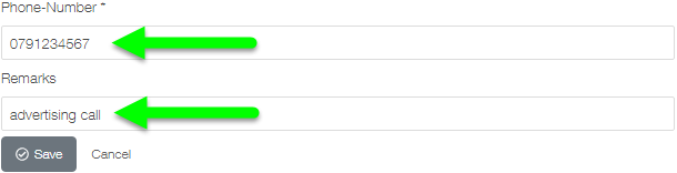 Here you now have the possibility to enter a phone number and a corresponding remark. The remarks are only used for your orientation, this is an optional value: