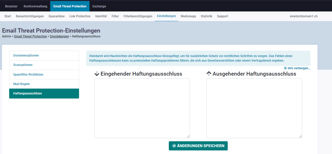Click on the menu item "Save changes". Once the incoming disclaimer has been saved, a pop-up window will appear on the screen.