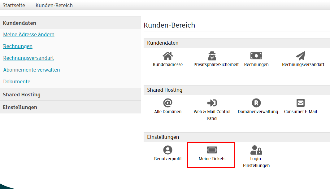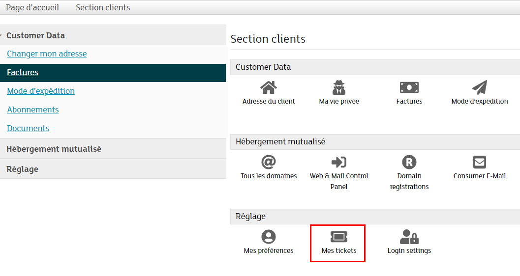 Dès que vous avez réussi à vous connecter à my.green.ch. Dans l'espace client, sélectionnez "Mes tickets" dans le rubrique réglage.
