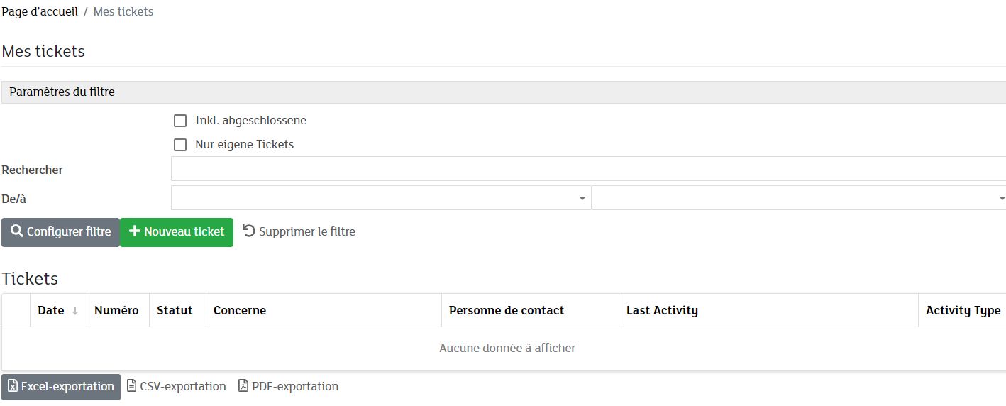 Cliquez ensuite sur le bouton "Noveau ticket".